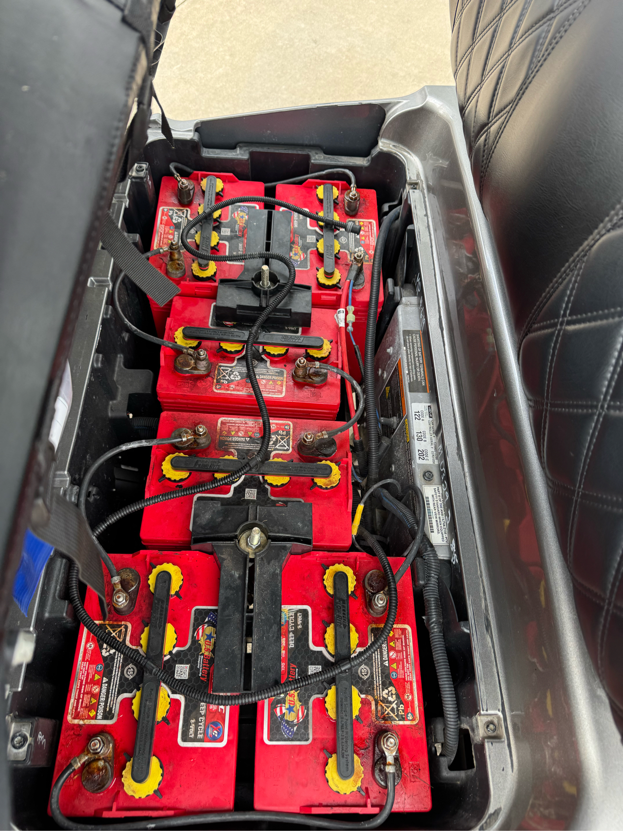 Equipped with a bluetooth stereo, small lift kit, after market wheels and tires, headlights & taillights, blinkers, mirrors, ball washer, cooler, bag holder, full soft cab enclosure and new batteries within the last year.